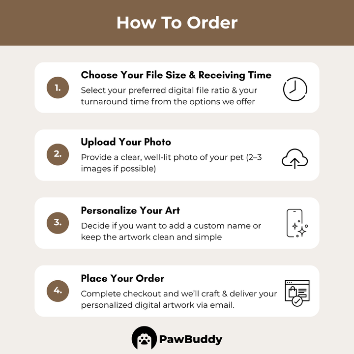 - Your custom artwork will be delivered as a high-resolution digital file via email within 3 days